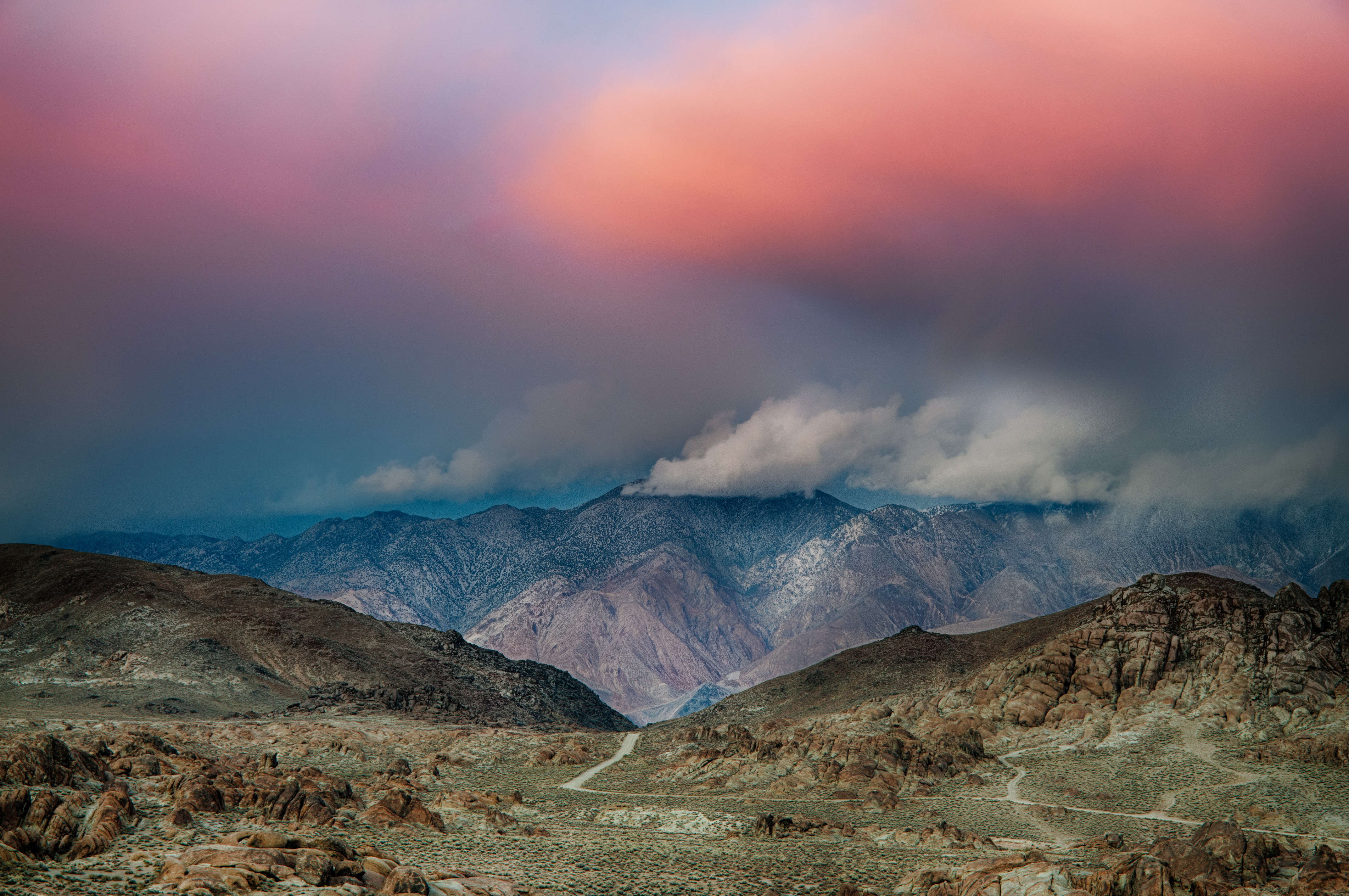 Late in the afternoon on a chilly November day the sun peeked out east of the Sierras. Looking up, I could see patches of new snow that the autumn storm had left behind. Once again, I was reminded of the truism of Ansel Adams’s remark that you’ll never capture the storm clearing if you don’t go out in bad weather!