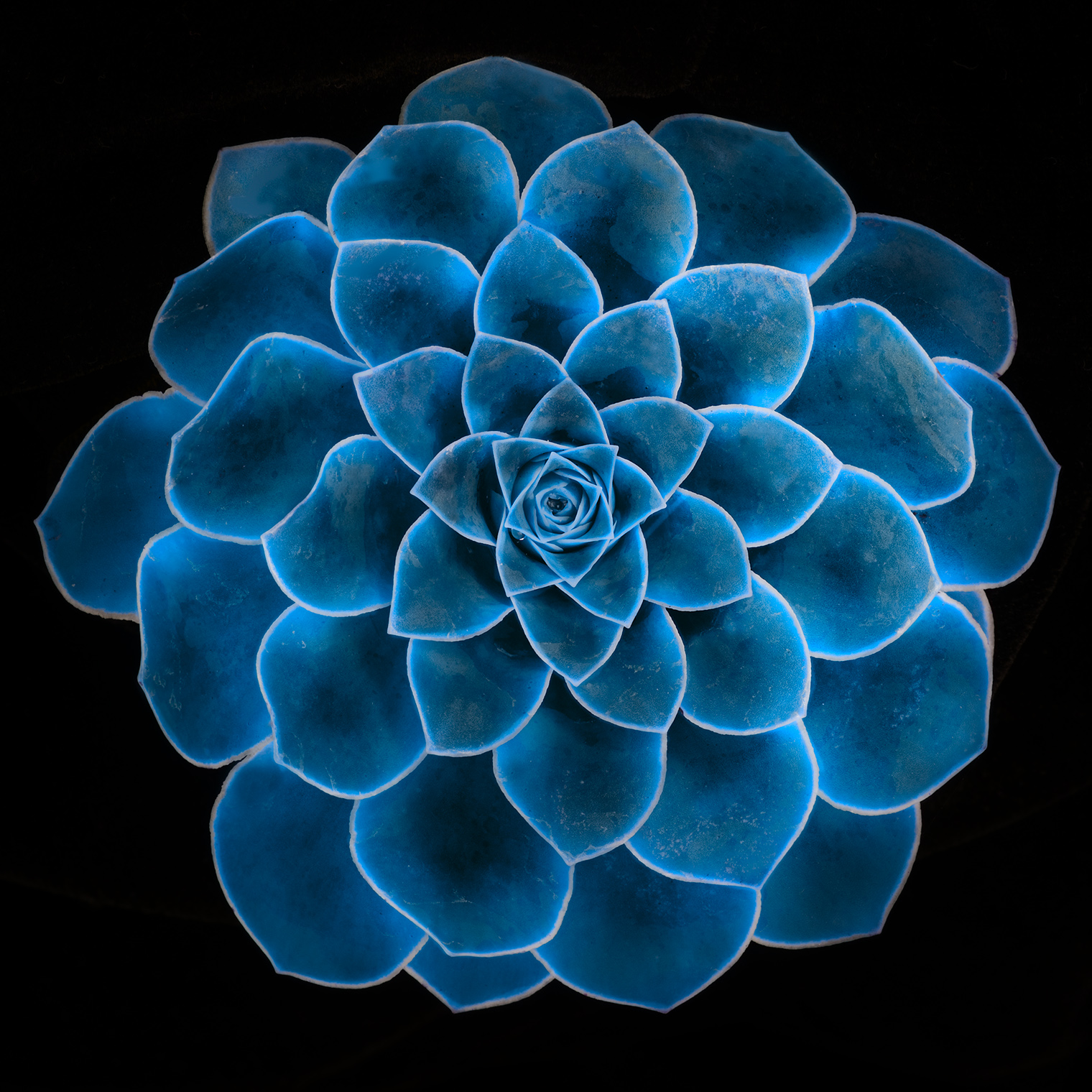 I’m often asked what I mean by LAB color adjustments, so I thought I’d show a simple set. These adjustments are based on a likely suspect, the succulent from my front porch I shot in September. The image is shown in its original version in the linked story (check out the color version) and at the bottom here. The LAB color adjustments I used are shown in the caption of each version. Incidentally, these adjustments are pretty thoroughly explained in The Photoshop Darkroom; you can also download the Photoshop action I wrote to generate this set of adjustments.