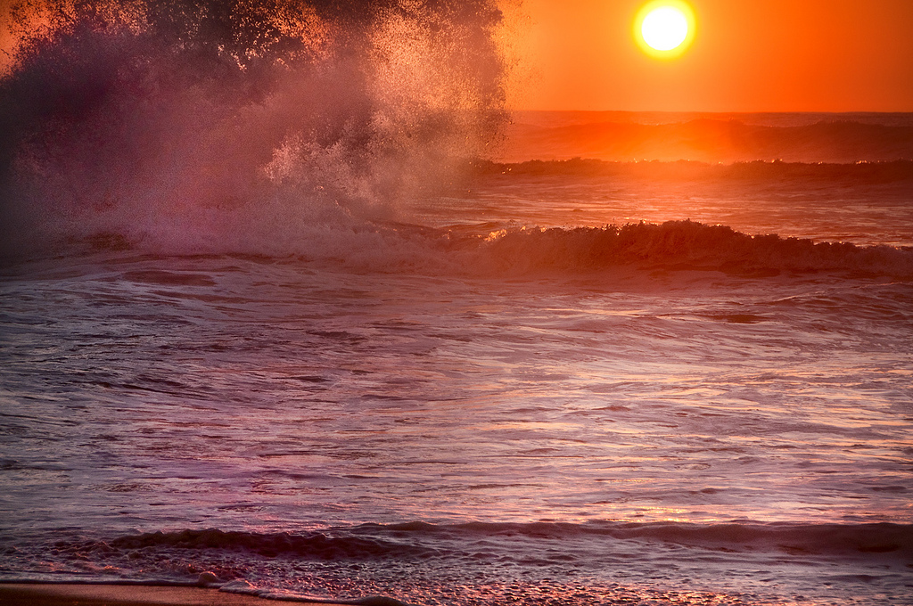 It always helps to put something in the foreground like the waves shown crashing in their interference patterns at North Beach on Point Reyes, California.