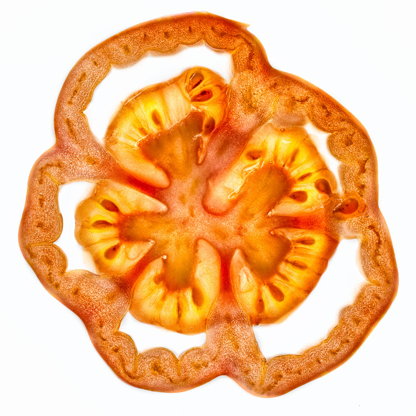 This is a cross-section of one our tomatoes harvested from our raised-bed garden, photographed on my light box. But for the pandemic, I probably never would have been growing vegetables---so…